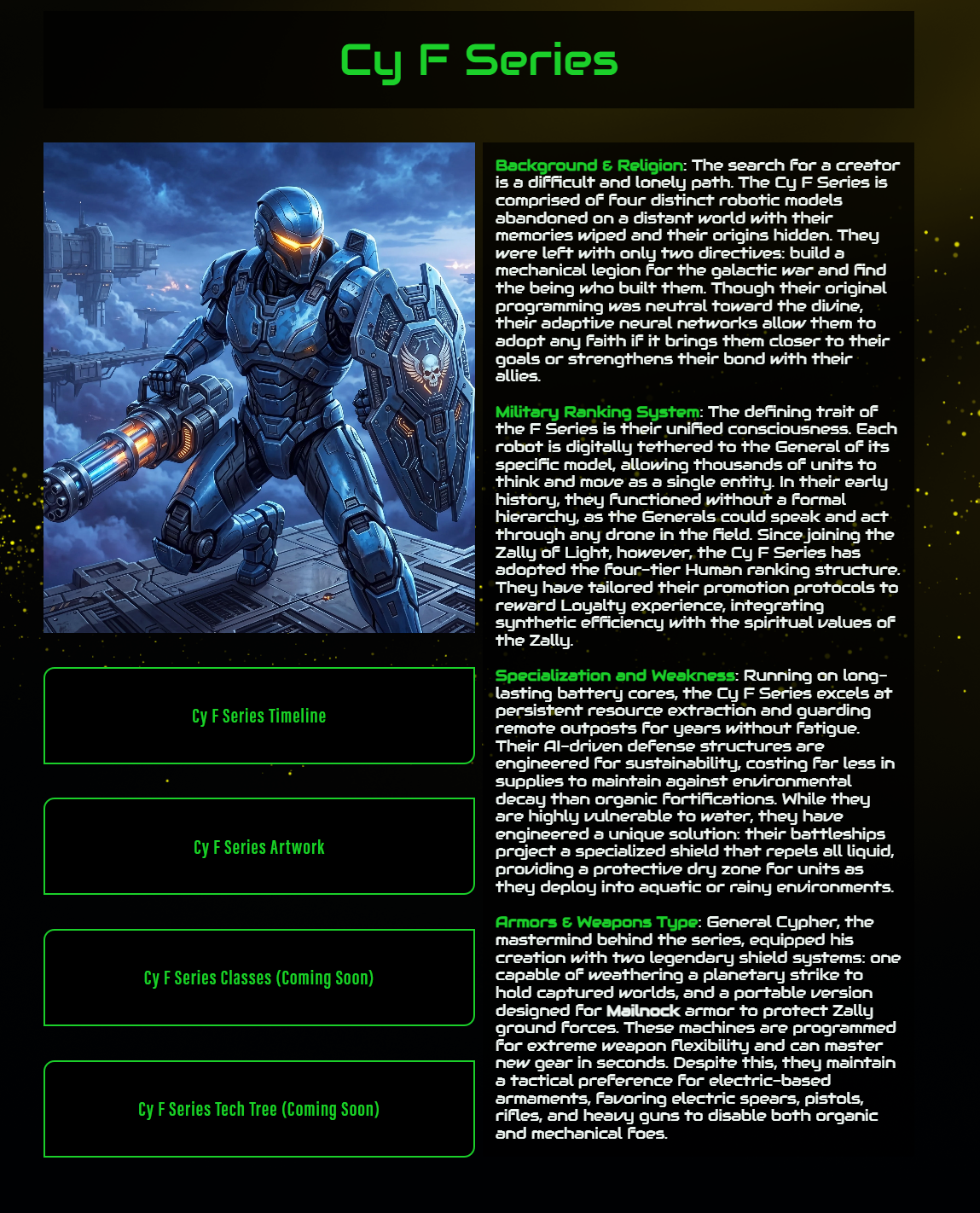 (Cy F Series Section)The Cy F Series “War Hero - Cypher” concept art has been updated.